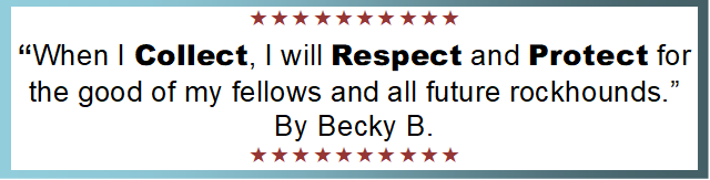 - I will observe the “Golden Rule”, will use Good Outdoor Manners and will at all times conduct myself in a manner that will add to the stature and Public Image of Rockhounds everywhere.