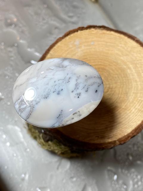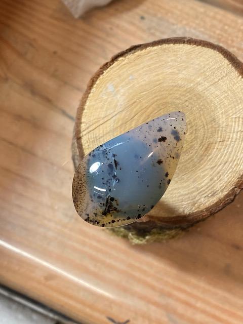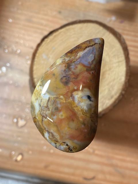 This was just a rock in the tumbler until I pulled it out and made a cab out of it. Too bad the chalcedony on the top isn’t clear or it would have been really nice.