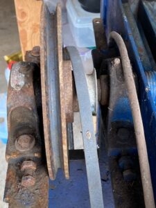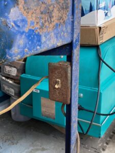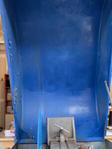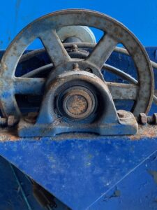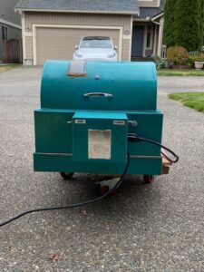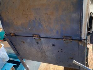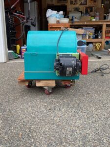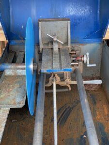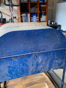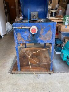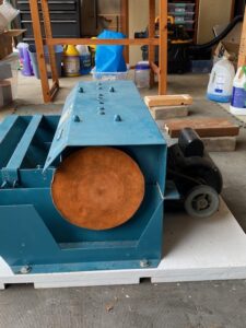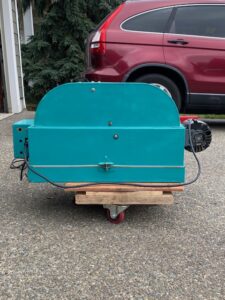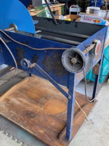 5. This is a vintage (1950-55) Highland Park 20″ slab saw which was graciously donated to us by Laurie. She had gotten her use out of it and contacted us to see if we would be interested. It took five of us to load it onto the trailer. I am in the process of stripping the paint off, removing and cleaning all the parts, and figuring out what other parts it needs to get up and running. It is in very good condition given its age. It mostly needs a new paint job. Here is a list of items it will need: 3/4 or 1 HP motor, on/off switch, splash guard for the blade, motor belt guard, feed pulley belt guard, handle for the hood, gearbox gasket, cutoff catch tray. There’s more but I don’t have the specific names for them. I estimate those parts will cost a little over $500 depending on their availability and what store we buy them from. I have contacted the Cigar Box in Bend Oregon for advice and questions.